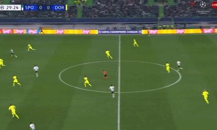 39'里斯本竞技禁区内配合,多特蒙德铲球解围不远,贡萨尔维斯外围直接起脚远射破门!2比0!